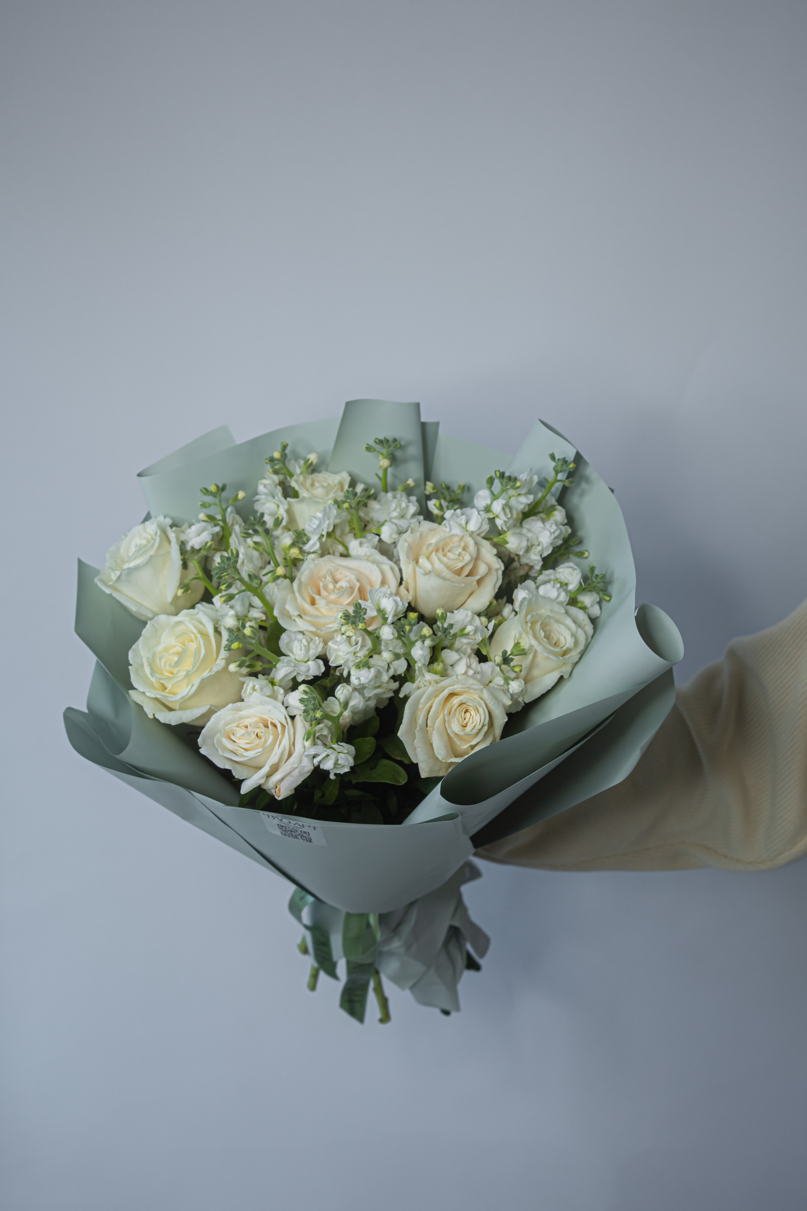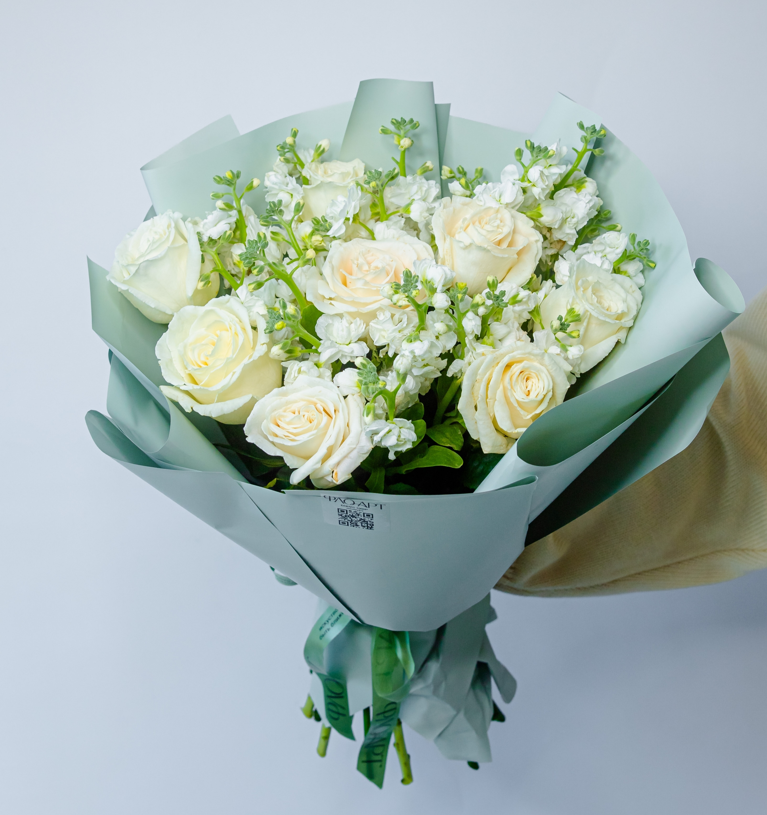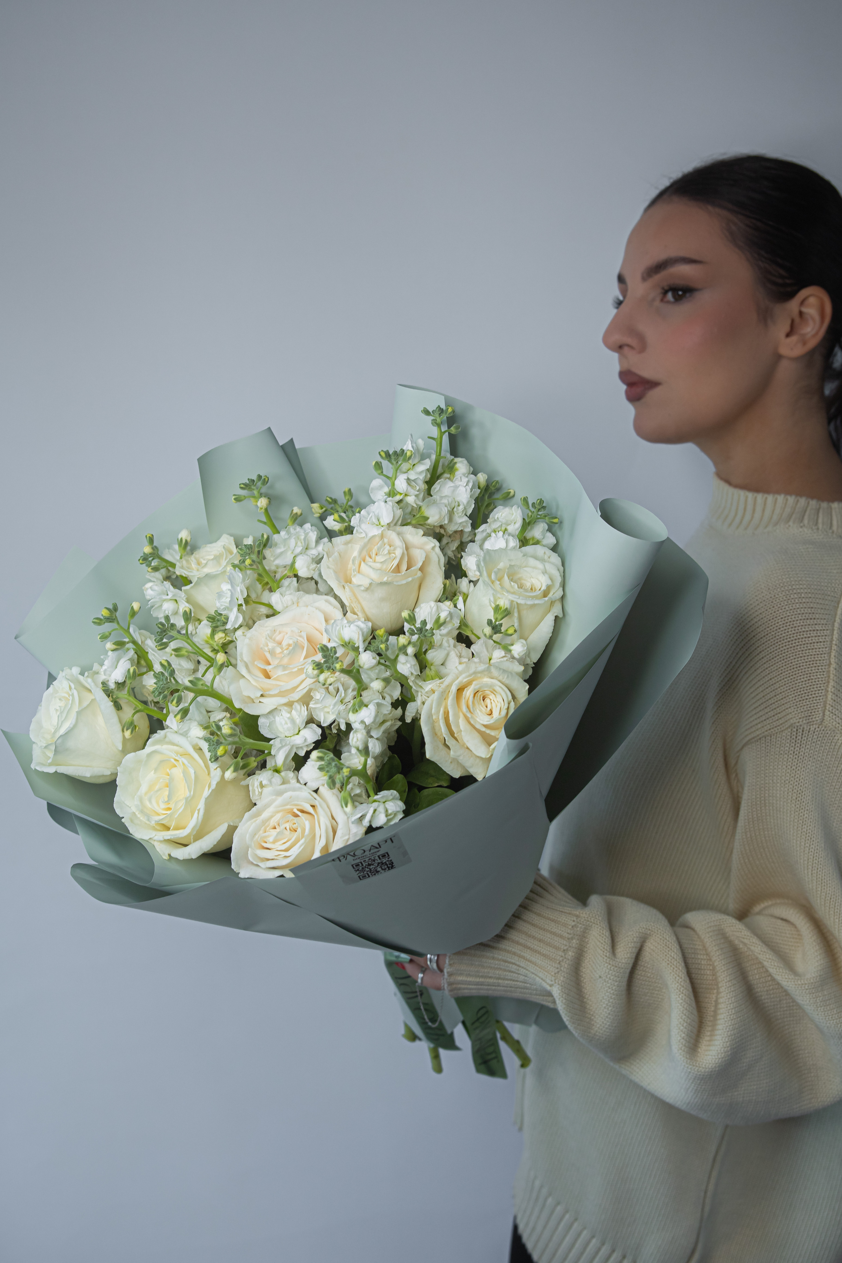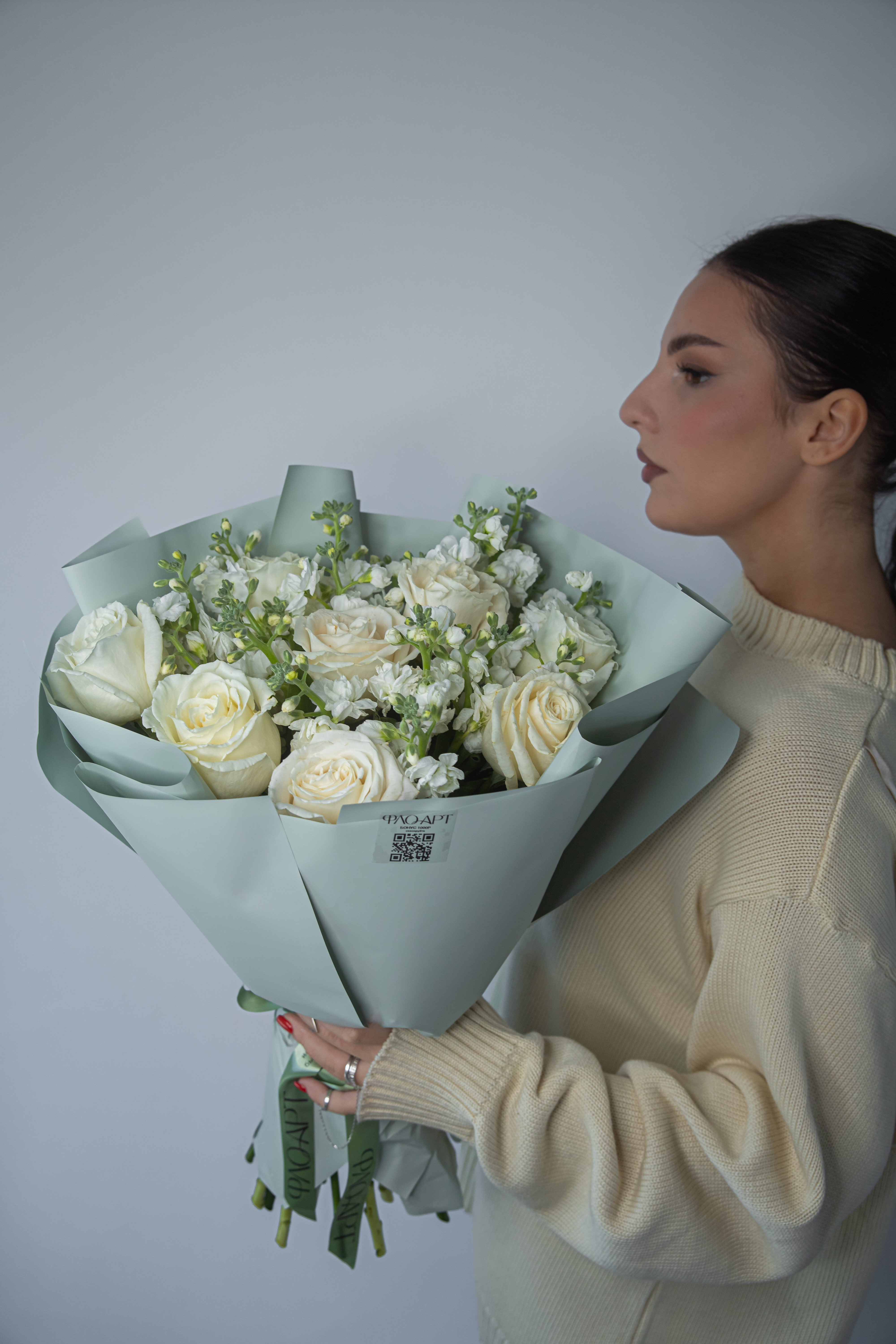 Ароматный дуэт из пионовидной розы и стойкой маттиолы станет отличным подарком на любой праздник!