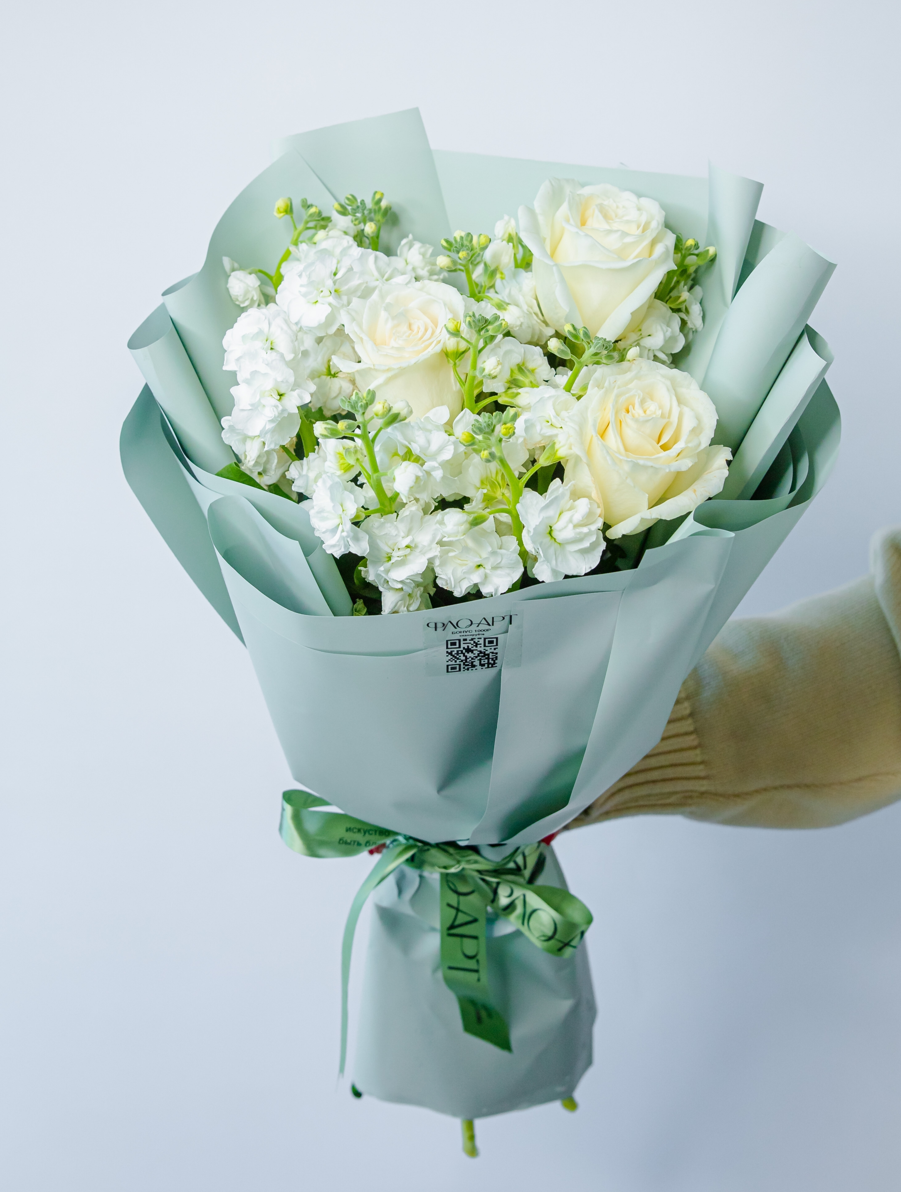 Ароматный дуэт из пионовидной розы и стойкой маттиолы станет отличным подарком на любой праздник!