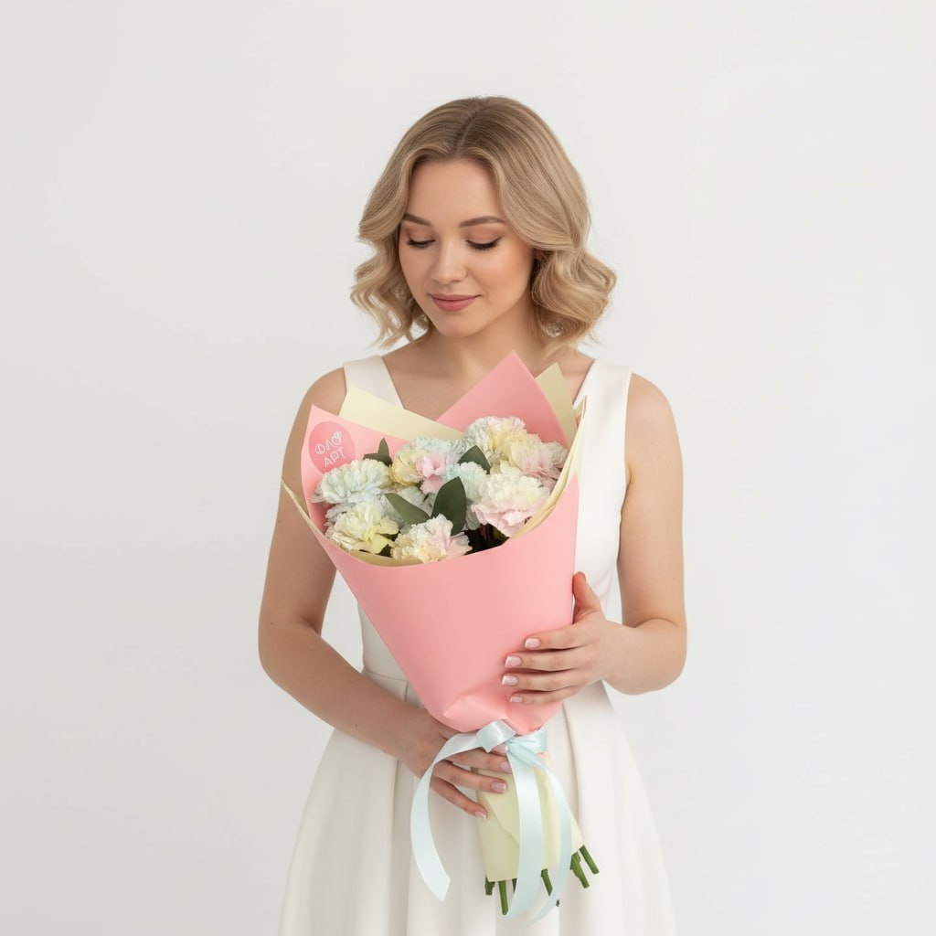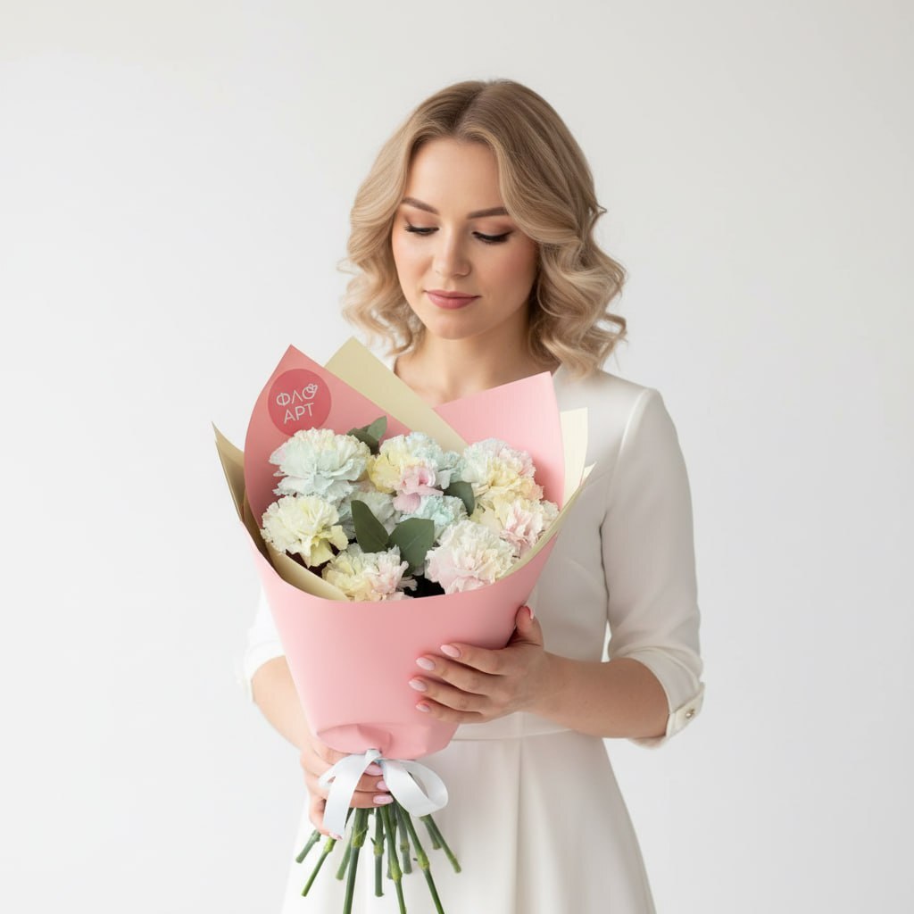 Этот маленький букет радужных диантусов наполнен праздничными красками – каждый цветок словно мини-радуга. Композиция создаёт эффект настоящей феерии красок и сразу поднимает настроение. Такой букет готов «удивлять и радовать получателя»: насыщенные разноцветные лепестки дарят настоящий восторг.