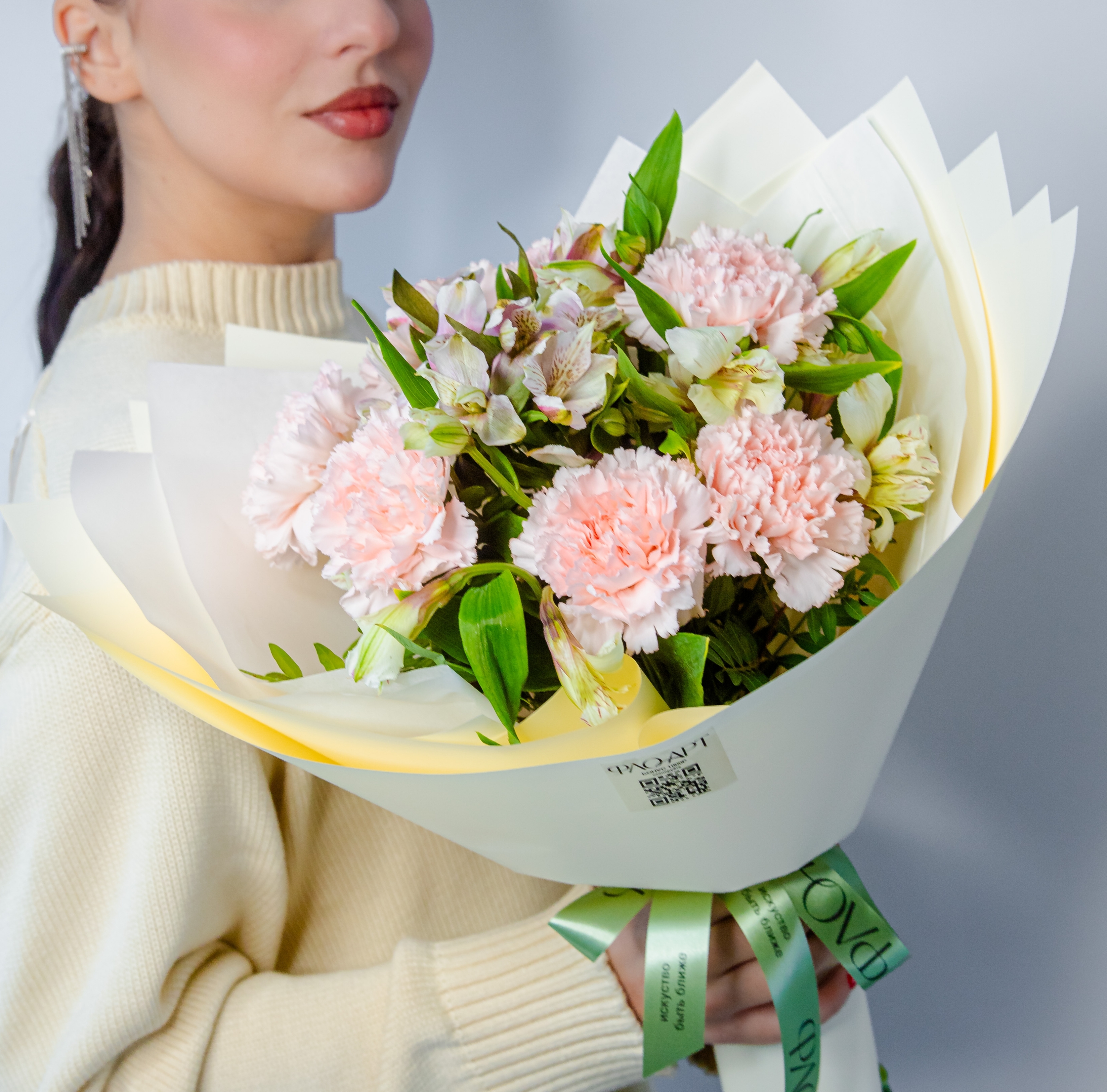 Стойкий дуэт диантусов и альстромерии создает изысканный букет, который станет ярким акцентом любого праздника! Стойкость букета поражает — свежесть цветов сохраняется длительное время, радуя глаз насыщенными оттенками и утонченным ароматом. Подарите близкому человеку незабываемые эмоции с этим великолепным подарком!