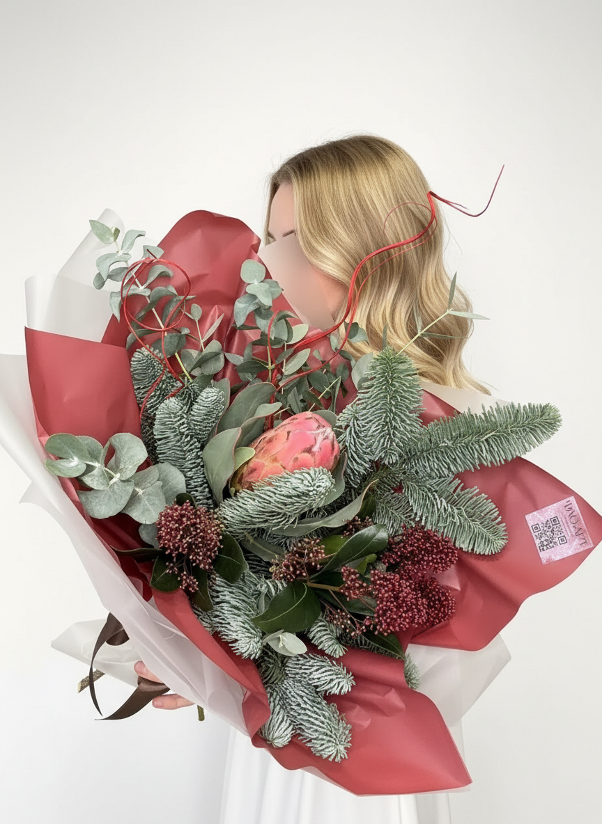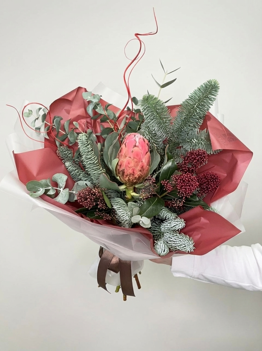 Зимний букет из нобилиса и экзотической протеи