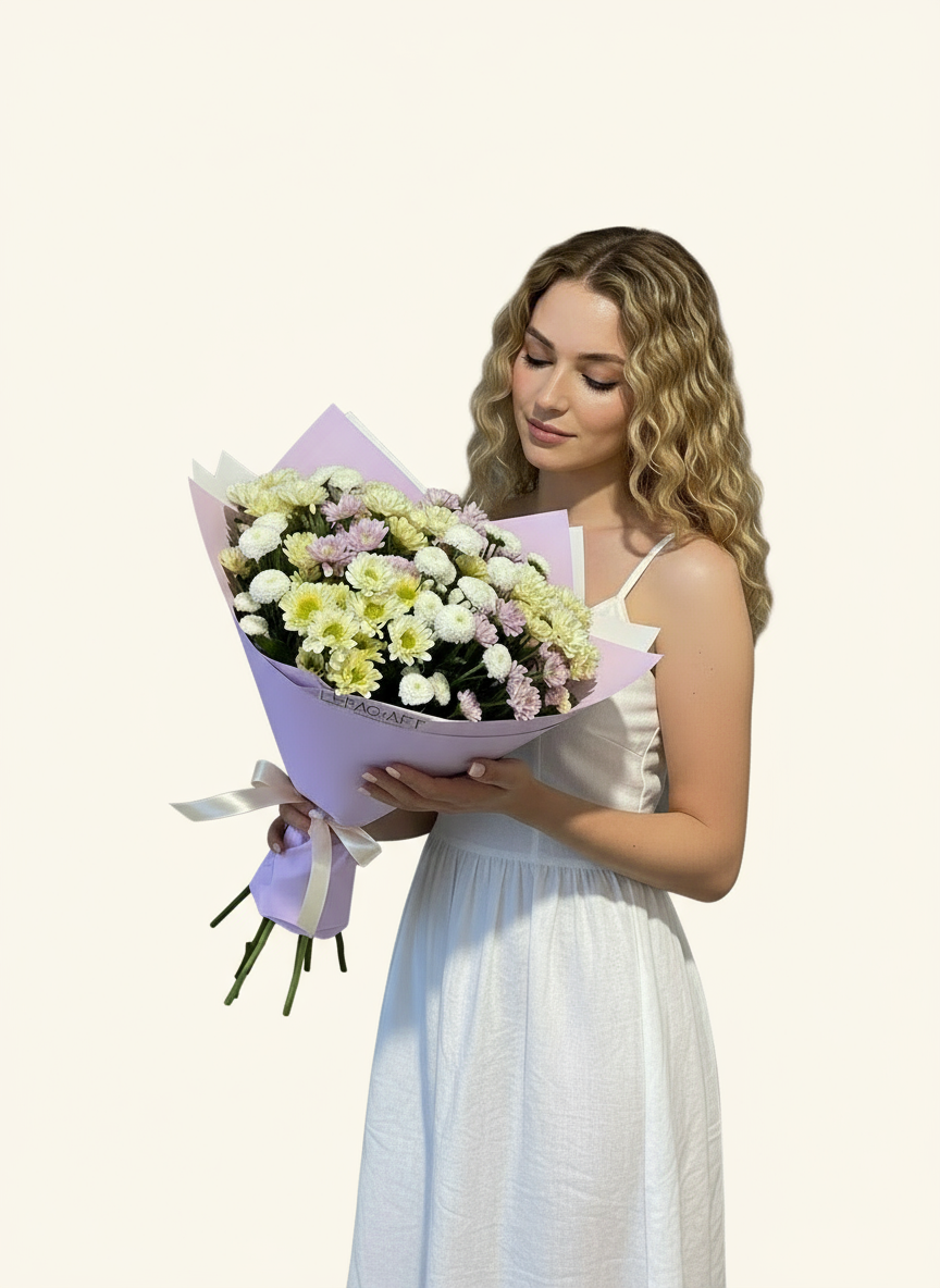 Потрясающий микс из хризантемы сантини не только прекрасный подарок по любому поводу, но и очень стойкий вариант букета!