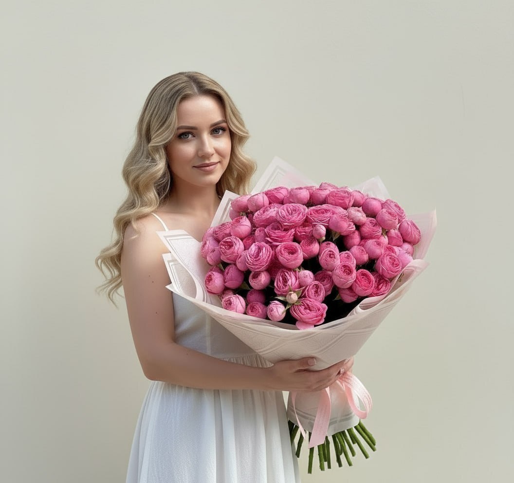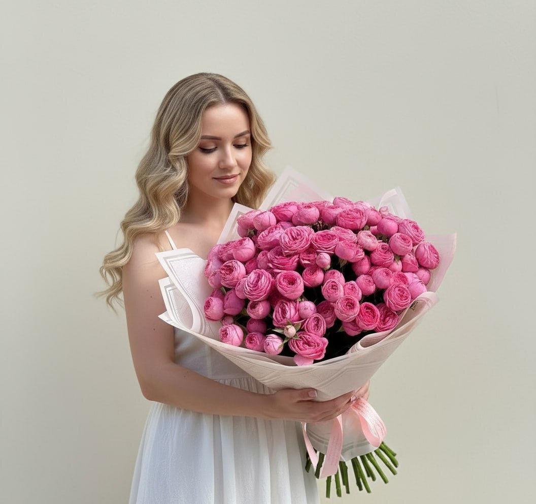 Невероятный букет из пионовидной кустовой розы - это восторг!